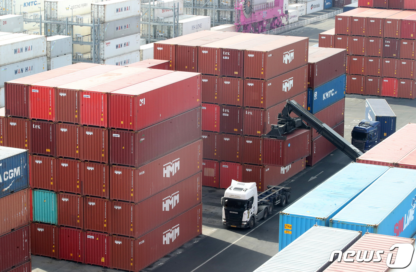 사진은 이날 인천 연수구 인천신항에서 컨테이너 선적 작업이 진행되는 모습. 2023.2.1/뉴스1 ⓒ News1 임세영 기자 |