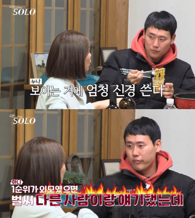 이어 숙소로 돌아온 두 사람. 영철은 ‘솔로 나라’에 들어오기 전 다이어트를 했다는 영숙에게 “보여지는 것에 엄청 신경을 쓴다”고 돌직구를 했다.