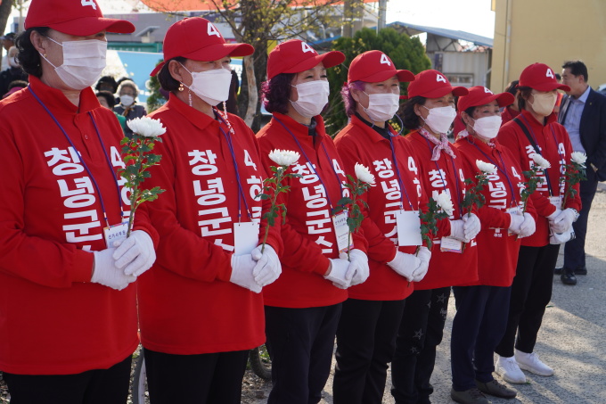 4·5 창녕군수 보궐선거에 출마한 하종근 후보 선거 운동원들이 29일 고 김부영 군수 고향인 고암면 고암농협 앞에 열린 유세현장에서 고인을 추모하고 있다.[사진=하종근 군수 선거캠프] 2023.03.30 |