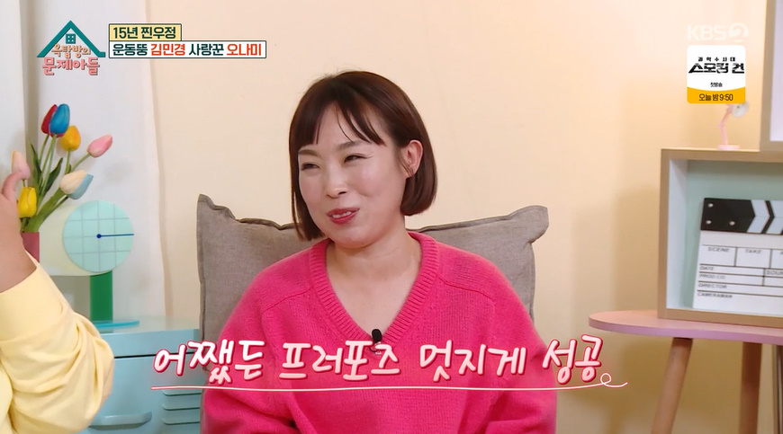 다시보기로 함께 '골때녀' 프러포즈를 시청했다는 두 사람. 오나미는 "남편이 되게 감동받아했다. 제가 더 운 것 같다. 너무 좋아하더라"라며 미소를 지었다.