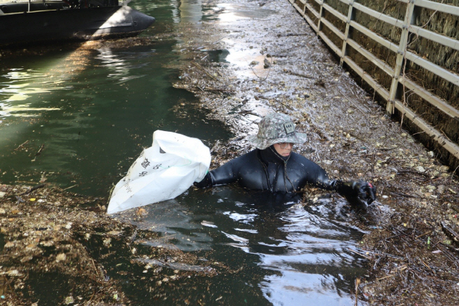 이와 함께 육군 수도군단 특공연대는 장병 65명과 고무보트 7대를 투입해 손이 닿기 어려운 호수 내부의 쓰레기와 각종 부유물을 처리했다.