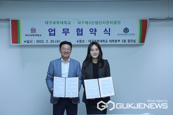 이에 대구과학대학교에 따르면, " 박지은 총장을 비롯한 보직교수들과 대구제3산업단지관리공단 손강호 전무이사 및 신진규 기획관리부장 등 양 기관 주요 보직자들이 참석한 가운데 지역산업발전 및 ESG(환경·사회·지배구조) 가치 창출을 위한 업무협약을 체결했다."30일 말했다.