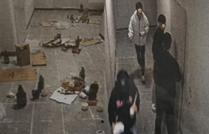이와 함께 안내문 하단에는 옥상에 무단 출입하는 학생들의 모습과 술자리 이후 쓰레기로 난장판 된 복도의 장면이 CCTV에 고스란히 담겼다.