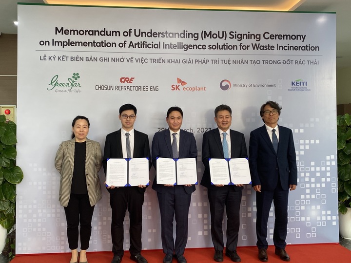 SK에코플랜트는 지난 29일 베트남 박닌에서 환경플랜트 전문기업 조선내화이엔지, 베트남 산업폐기물처리 기업 그린스타와 베트남 소각시설에 SK에코플랜트가 개발한 소각로 운영 최적화 시스템인 'ZERO4 WtE 솔루션' 도입을 위한 업무협약을 체결했다고 30일 밝혔다.