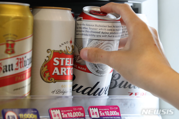 [서울=뉴시스]이지영 기자 = 편의점에서 4캔 1만 1000원이던 수입 맥주가 내달부터 1만 2000원으로 오른다.