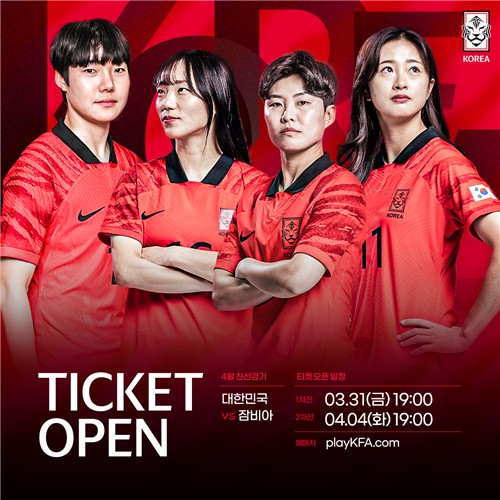(서울=연합뉴스) 안홍석 기자 = 대한축구협회는 내달 7일과 11일 열리는 한국 여자 축구 대표팀과 잠비아의 평가전 2연전 입장권의 예매 일정을 30일 공개했다.