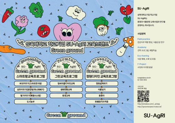 삼육대 학교기업 SU-AgRI(SU-어그리, 대표 김유선)는 신규 교육브랜드 ‘그린 그라운드(Green ground)’를 런칭했다. SU-AgRI는 도심형 스마트팜(식물공장) ‘에코팜센터’를 기반으로 첨단농업 교육과 식물재배 사업을 영위하고 있다.