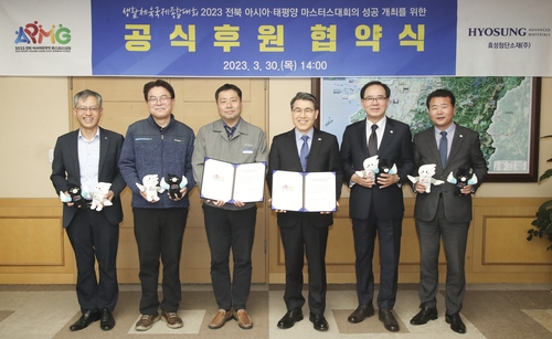(전주=연합뉴스) 최영수 기자 = 전북 전주에 기반을 둔 효성첨단소재가 오는 5월 열리는 2023 전북 아시아·태평양 마스터스대회(이하 전북 아태마스터스대회)의 공식 후원사로 참여한다.