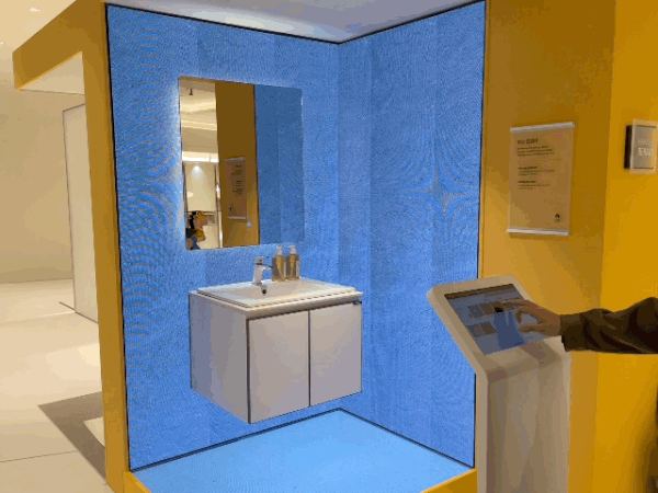 영상을 활용해 부엌·바스 등 공간의 변화 모습을 다채롭게 체험해 볼 수 있는 '디지털 컬러링존'도 눈길을 끈다. 바스 컬러링존 벽면과 바닥에 디지털 패널이 설치돼 고객이 원하는 색상과 소재를 실시간으로 적용해 눈으로 볼 수 있다.