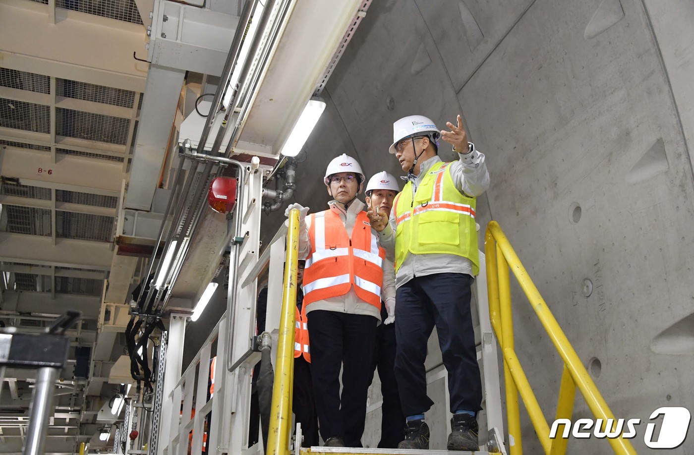 (서울=뉴스1) = 최상대 기획재정부 차관이 30일 공공기관 투자집행 현장방문차 한국도로공사 김포-파주 고속도로 한강터널 공사현장을 찾아 시찰하고 있다. (기획재정부 제공) 2023.3.30/뉴스1