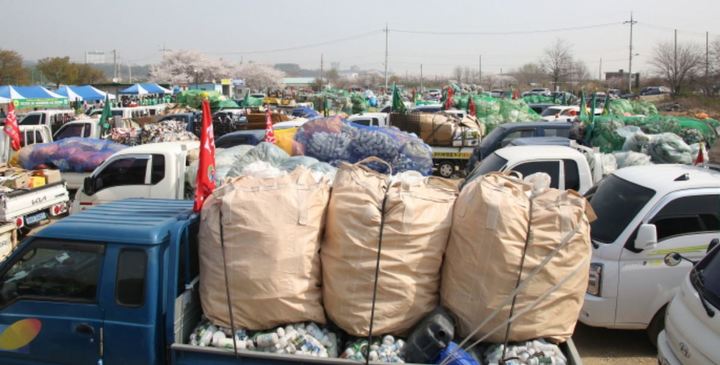 [경산=뉴시스] 강병서 기자 = 경북 경산시 새마을지도자경산시협의회는 30일 하양읍 운동장에서 자원재활용품 수집 경진대회를 열었다.