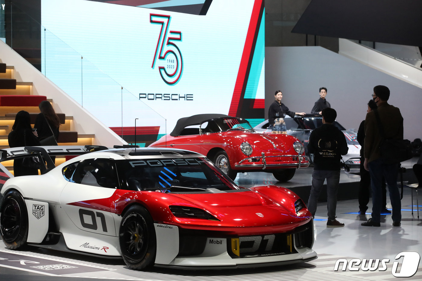 (고양=뉴스1) 이승배 기자 = 30일 경기도 고양시 킨텍스에서 열린 '2023 서울모빌리티쇼에 포르쉐 차량들이 전시돼 있다. 2023 서울모빌리티쇼는 전 세계 12개국 163개 기업 및 기관이 참가해 지속가능하고 지능화된 이동혁명을 주제로 다음달 9일까지 고양시 킨텍스 1전시장에서 열린다. 2023.3.30/뉴스1