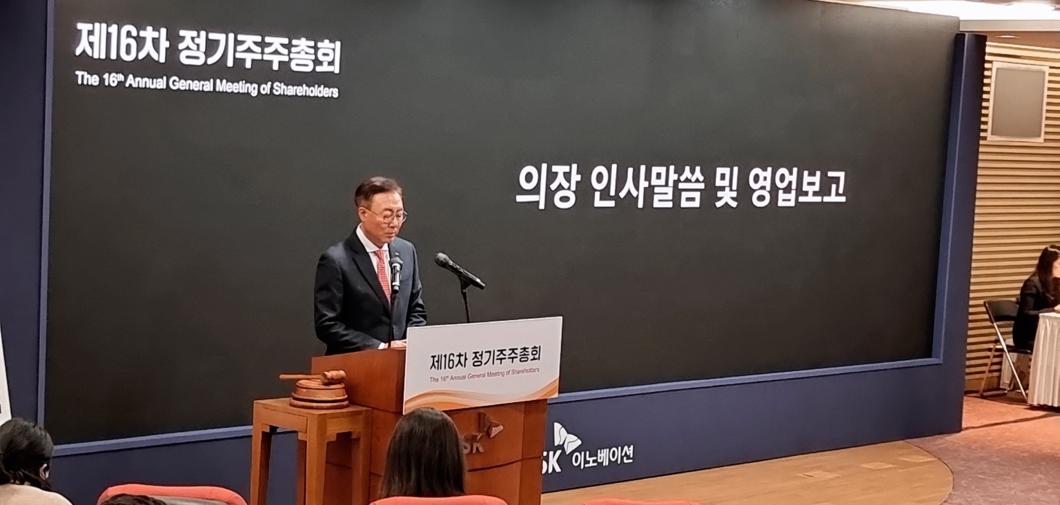 김준 SK이노베이션 대표이사 부회장이 30일 열린 SK이노베이션 제16차 정기주주총회에서 "투자 유치 조건이 프리IPO로 SK온 기업공개(IPO)는 피해가기 어렵다"며 "약속된 기간이 있어 투자 유치 후 4년, 그러니까 2026년 말 또는 2027년 중에는 IPO를 해야 할 것"이라고 말했다.