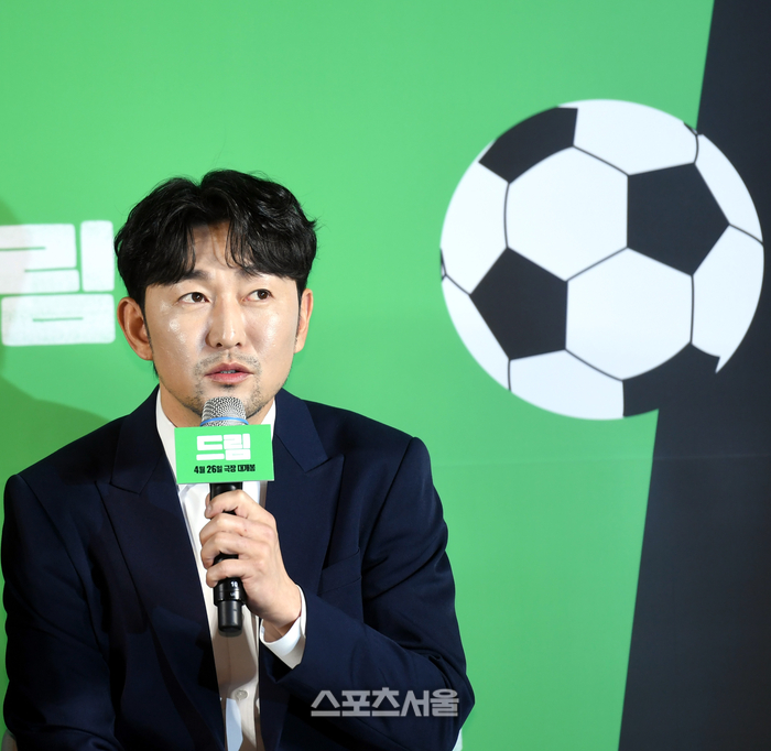 허준석이 30일 서울 메가박스성수에서 열린 영화 ‘드림’ 제작보고회에서 인사말을 하고 있다. 영화 ‘드림’은 개념 없는 전직 축구선수 홍대(박서준 분)와 열정 없는 PD 소민(아이유 분)이 집 없는 오합지졸 국대 선수들과 함께 불가능한 꿈에 도전하는 이야기를 그린 작품으로 4월 26일 개봉예정이다.2023. 3. 30.최승섭기자 thunder@sportsseoul.com |