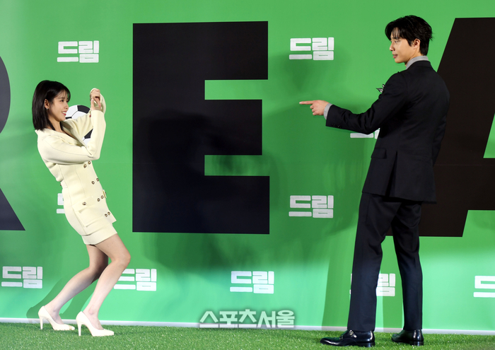 아이유와 박서준이 30일 서울 메가박스성수에서 열린 영화 ‘드림’ 제작보고회에서 포토타임을 갖고 있다. 영화 ‘드림’은 개념 없는 전직 축구선수 홍대(박서준 분)와 열정 없는 PD 소민(아이유 분)이 집 없는 오합지졸 국대 선수들과 함께 불가능한 꿈에 도전하는 이야기를 그린 작품으로 4월 26일 개봉예정이다.2023. 3. 30.최승섭기자 thunder@sportsseoul.com |