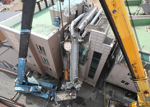 꺾인 항타기 절단 어려워…해체에 하루 더 걸릴 듯