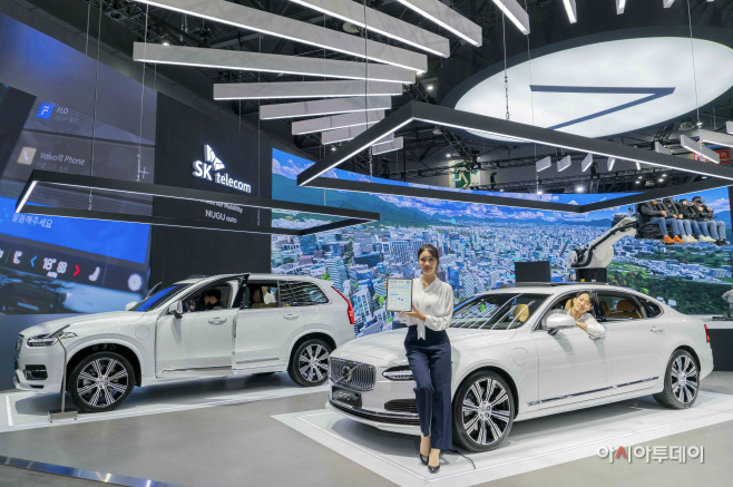 SKT는 자동차 전용 AI 플랫폼인 '누구 오토' 서비스가 탑재된 볼보 XC90, S90, C40리차지 차량을 전시해 관람객들이 음성만으로 차량의 기능을 제어하며 안전하고 스마트한 주행을 즐기는 체험을 제공한다.
