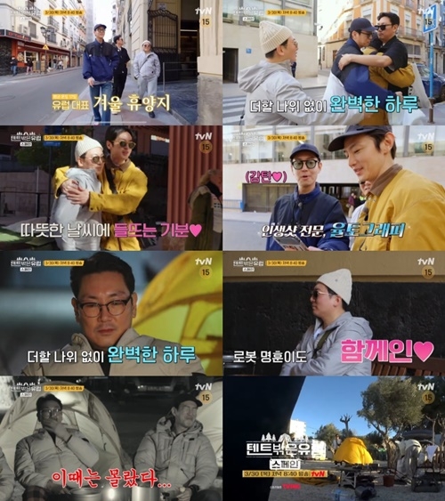 30일 방송되는 tvN ‘텐트 밖은 유럽 - 스페인 편’ 5회에서는 알리칸테의 따스한 햇살과 함께 캠핑의 로망을 제대로 실현하는 조진웅, 최원영, 박명훈, 권율 4인방의 모습이 그려진다.