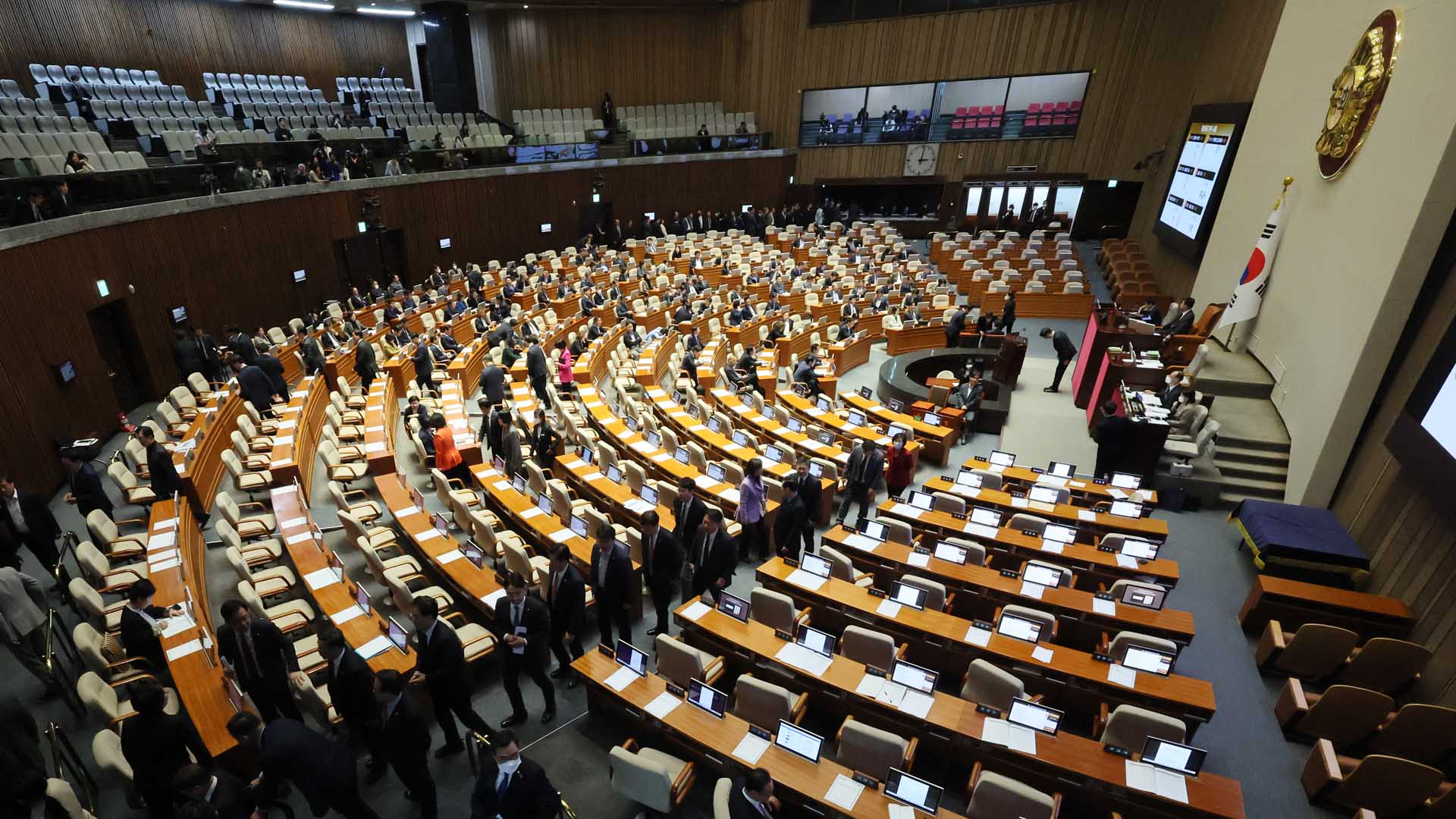 무기명 투표 결과 재석의원 177명 중 찬성 156명, 반대 18명, 기권1명, 무효 2명으로 이 안이 통과됐습니다.