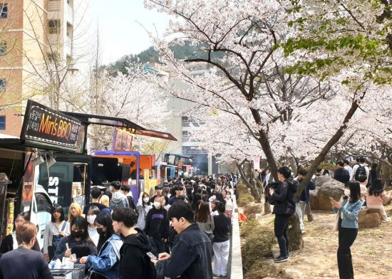 이날 축제에 참가한 학생들은 ‘공강’ 시간에 모처럼 삼삼오오 무리를 이뤘다. 벚꽃이 만개한 벚나무 아래서 오랜만에 찾아온 봄 축제와 함께 캠퍼스의 낭만을 만끽했다.