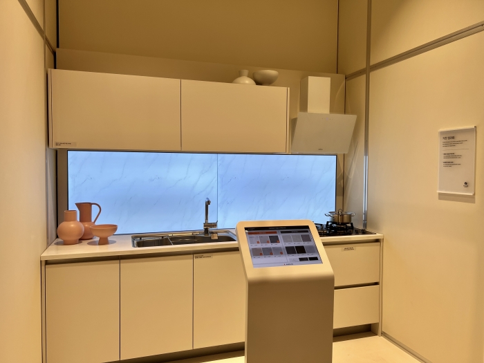 한샘 디자인파크 송파점 지하 1층에 위치한 '키친 컬러링'. 고객이 자유롭게 키친판넬과 타일을 조합해 나만의 공간을 만들 수 있다. 사진=윤서영 기자 |