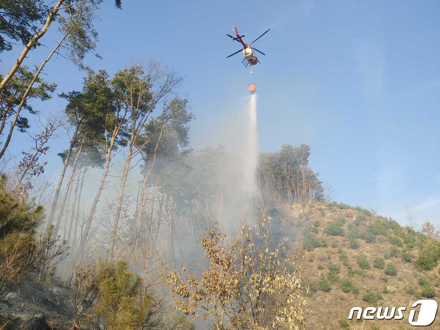 산림당국은 진화헬기 2대와 지휘차 등 장비 11대, 인력 75명을 투입해 진화 중이다.