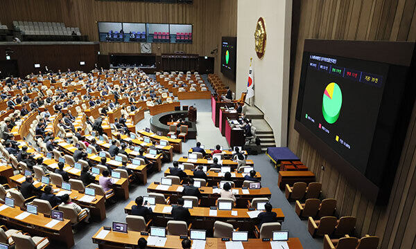 30일 열린 국회 본회의에서 국내 반도체 산업 육성을 위한 이른바 'K칩스법'(조세특례제한법 개정안)이 통과되고 있다. 연합뉴스 |