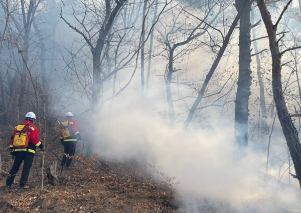 산림당국은 산불진화헬기 11대(지자체 6, 군 2, 소방 2, 국립공원 1), 산불진화장비 37대(산불지휘·진화차 7, 소방차 30), 산불진화대원 825명(산불재난특수진화대 등 60 공무원 10, 소방 55, 군인 700)을 투입, 산불 진화에 총력을 다하고 있다.