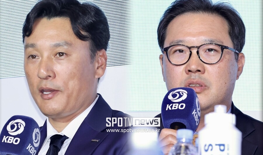 KBO는 30일 서울시 용산구 한남동 그랜드하얏트서울에서 열린 ‘2023 신한은행 SOL KBO리그 미디어데이’를 열었다. 이날 자리에 참석한 신입 사령탑 이 감독과 박 감독은 서로의 성공을 기원했다.