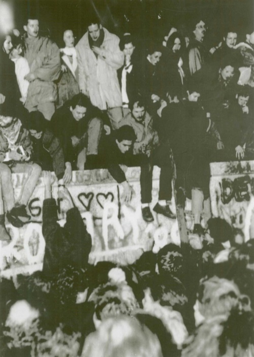 1989년 11월 베를린 장벽이 사실상 무용지물이 된 뒤 동·서베를린 시민이 나란히 장벽 위에 올라가 대결 종식을 자축하고 있다. 세계일보 자료사진 |