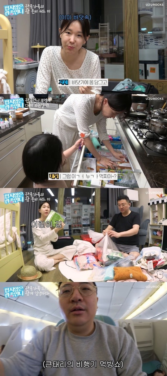 각종 소스, 반찬, 접시 등도 있었다. 이지혜는 "이 정도면 한 달 아니냐. 남들과 똑같이 챙기는데, 우리가 총정리다. 우리 영상을 보면 괌을 한 번 갔다오는 느낌이다. 샤워 가운도 필요하다. 호텔로 들어갈 때 추워서 필요하다"며 준비물 리스트를 공개했다.