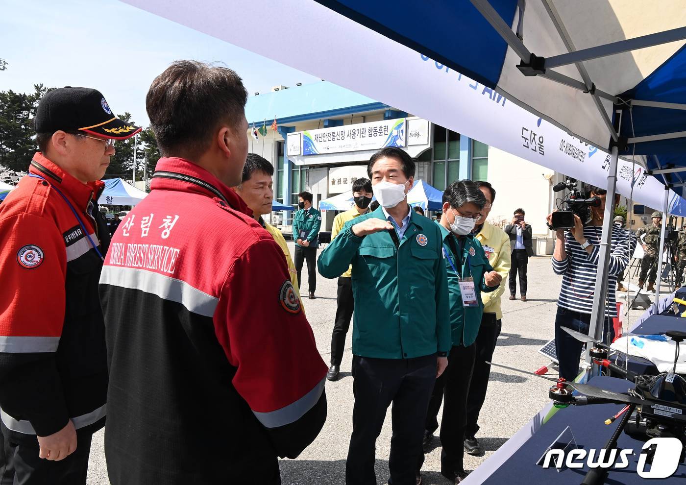 (서울=뉴스1) 양새롬 기자 = 김성호 행정안전부 재난안전관리본부장은 30일 강원 화천과 충북 제천, 경기 포천에서 발생한 산불 상황과 관련 "소방 방화선을 철저히 구축해 민가 피해를 방지하고, 확산 우려 지역의 주민은 사전 대피 조치하라"고 긴급지시했다.