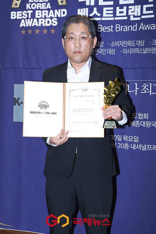(서울=국제뉴스) 이대웅 기자 = 제16회 대한민국 베스트브랜드 어워즈가 30일 오후 서울 중구 프레스센터에서 열렸다. 이날 미디어감독 부문에서 2023 자랑스런 한국인 대상을 수상한 김종훈 감독이 기념 포즈를 취하고 있다.