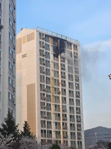 불이 난 음성 15층짜리 아파트 |