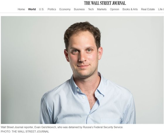 러시아에 의해 구금된 월스트리트저널 기자 에반 게르시코비치(32). WSJ 홈페이지 캡처 |
