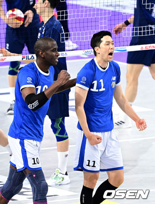 1세트, 현대캐피탈 최민호와 오레올이 블로킹 득점에 기뻐하고 있다. 2023.03.30 / dreamer@osen.co.kr