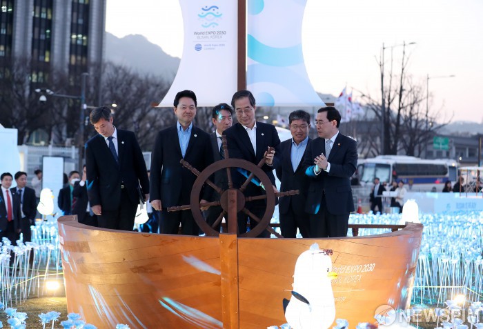 한덕수 총리, 2030 부산세계박람회 유치기원 조형물 점등식