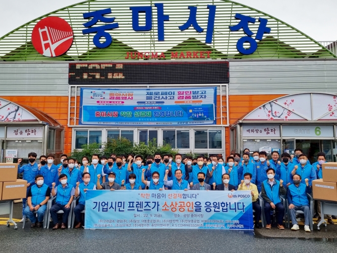 [서울=뉴스핌] 채송무 기자 = 지난해 9월 포스코 우수공급사(PHP)와 함께 중마시장 '착한 선결제'를 진행한 모습. [사진 제공=포스코] 2023.03.30 dedanhi@newspim.com |