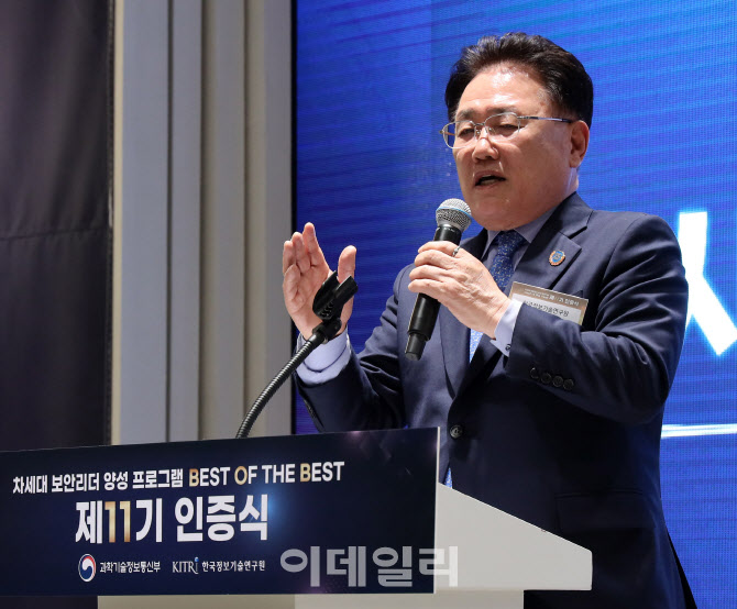 [이데일리 김태형 기자] 유준상 KITRI 원장이 30일 서울 여의도CCMM빌딩에서 열린 '차세대 보안리더 양성 프로그램(BoB) 11기 인증식'에서 인사말을 하고 있다.