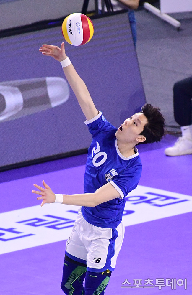 [스포츠투데이(인천)=방규현 기자] 2022-2023 V-리그 대한항공 현대캐피탈의 챔피언결정전 1차전 경기가 30일 오후 인천광역시 계양구 계양체육관에서 열렸다.