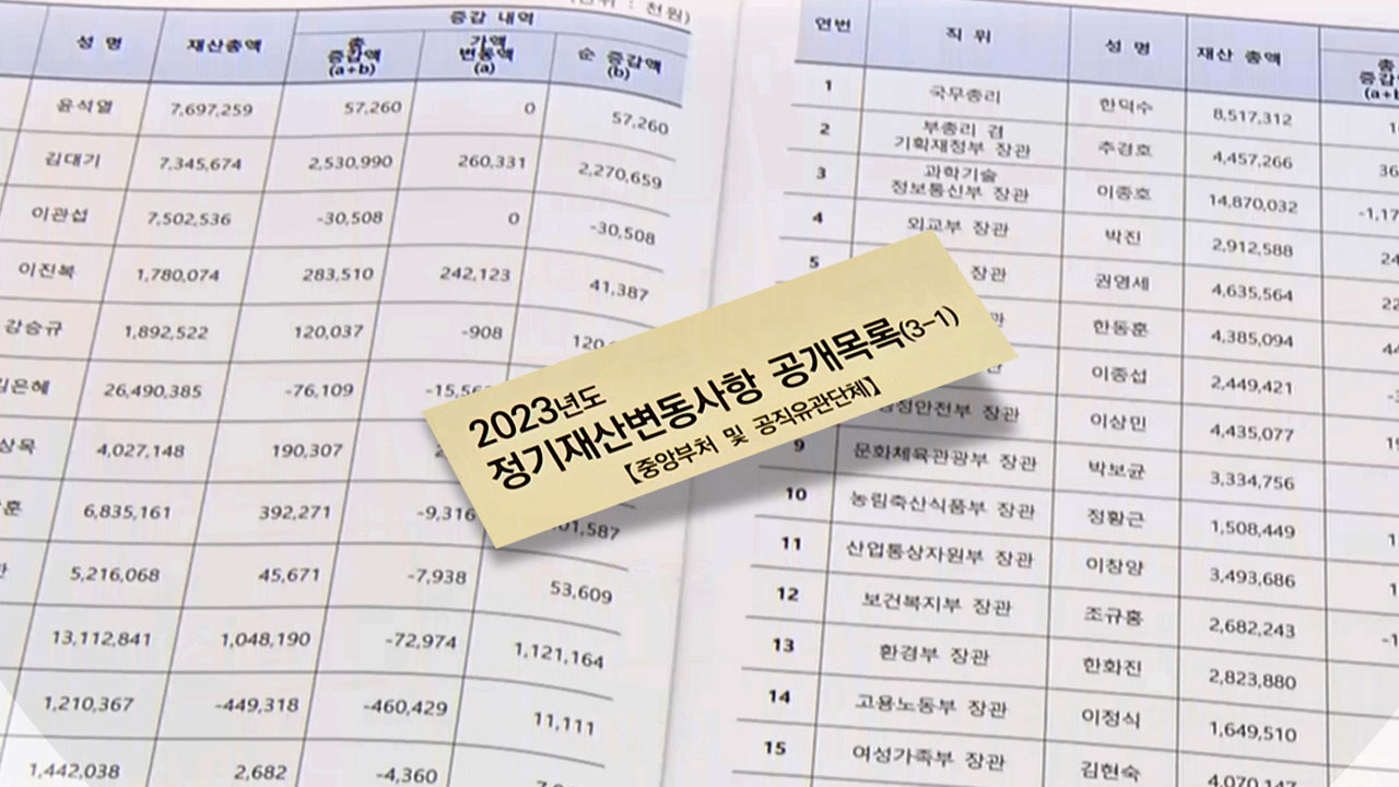 정부공직자 윤리위원회가 오늘(30일) 정부 고위 공직자들의 재산 내역을 공개했습니다.