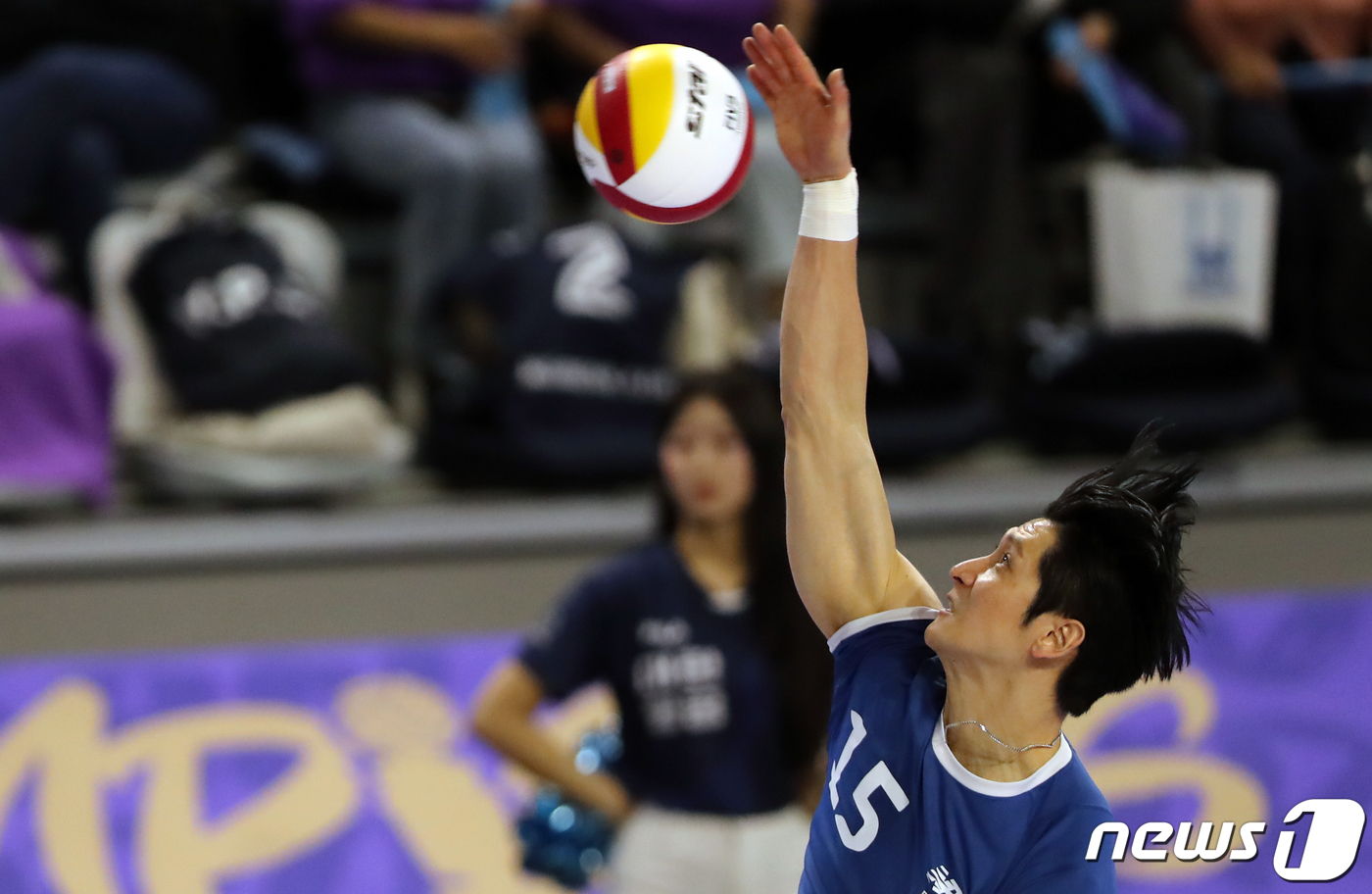 (인천=뉴스1) 황기선 기자 = 0일 오후 인천 계양체육관에서 열린 프로배구 도드람 2022-2023 V리그 챔피언결정전 1차전 남자부 대한항공과 현대캐피탈의 경기에서 현대캐피탈 문성민이 서브를 날리고 있다. 2023.3.30/뉴스1