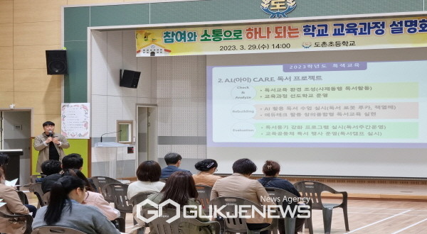 (봉화=국제뉴스) 백성호 기자 = 도촌초등학교(교장 김춘희)는 3월 29일(수), 도촌초 도솔관에서 '참여와 소통으로 하나 되는 학교 교육과정 설명회'라는 주제로 1학기 학교 교육과정 설명회를 실시했다.