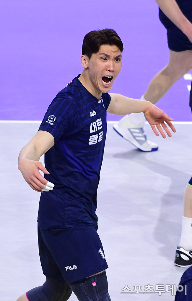대한항공 김규민이 승리 후 기뻐하고 있다. 2023.03.30.