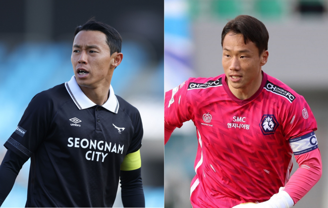 [사진] (왼쪽)성남 심동운, (오른쪽)충북청주 류원우 / 한국프로축구연맹 제공. |