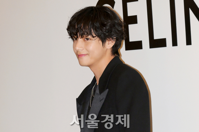 그룹 방탄소년단(BTS) 뷔가 30일 오후 서울 영등포구 여의도 더현대 서울에서 진행된 프랑스 럭셔리 브랜드 셀린느 팝업 스토어 오픈 기념 포토콜에서 포즈를 취하고 있다.