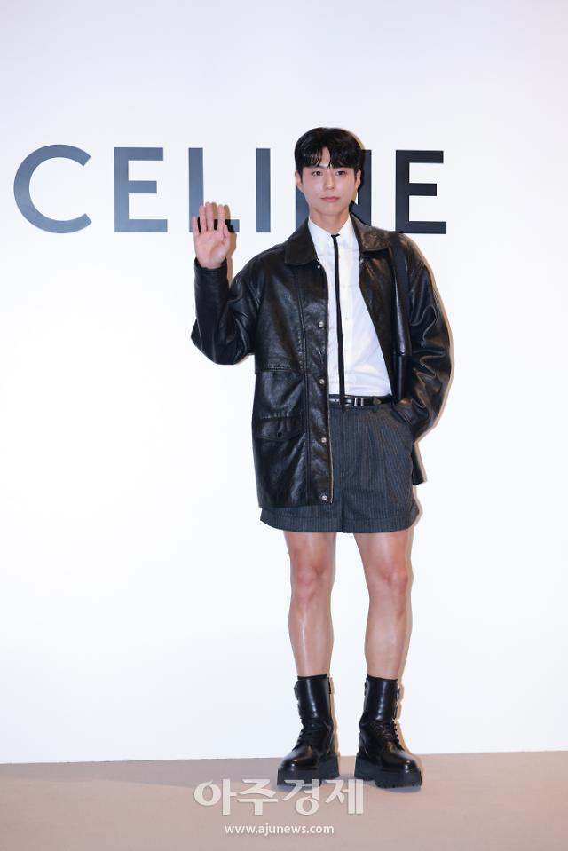 배우 박보검이 30일 오후 서울 영등포구 더현대 서울에서 열린 파리 럭셔리 브랜드 '셀린느(CELINE)' 팝업스토어 오픈 기념 포토콜 행사에 참석해 포즈를 취하고 있다.