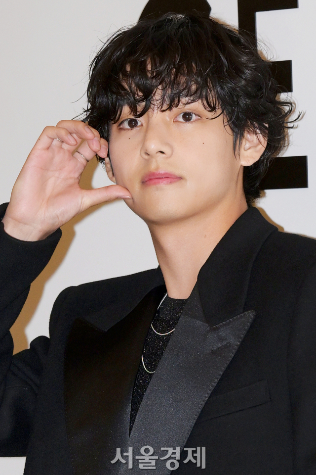 그룹 방탄소년단(BTS) 뷔가 30일 오후 서울 영등포구 여의도 더현대 서울에서 진행된 프랑스 럭셔리 브랜드 셀린느 팝업 스토어 오픈 기념 포토콜에서 포즈를 취하고 있다.