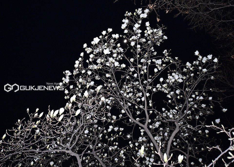 (인천=국제뉴스) 안희영 기자 = 30일 인천광역시 부평구 십정녹지공원을 찾은 시민들이 벚꽃과 목련 등이 만개한 가운데 산책과 운동을 하며 3월의 봄 야경을 즐기고 있다.