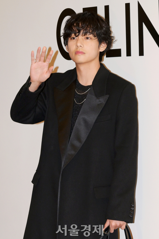 그룹 방탄소년단(BTS) 뷔가 30일 오후 서울 영등포구 여의도 더현대 서울에서 진행된 프랑스 럭셔리 브랜드 셀린느 팝업 스토어 오픈 기념 포토콜에서 포즈를 취하고 있다.